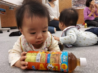 ヒッポに入会したばかりというぽんちゃん宅のふたごちゃん(9ヶ月)べべフィ一番乗りでした。只今、はいはい、ずりずり中!